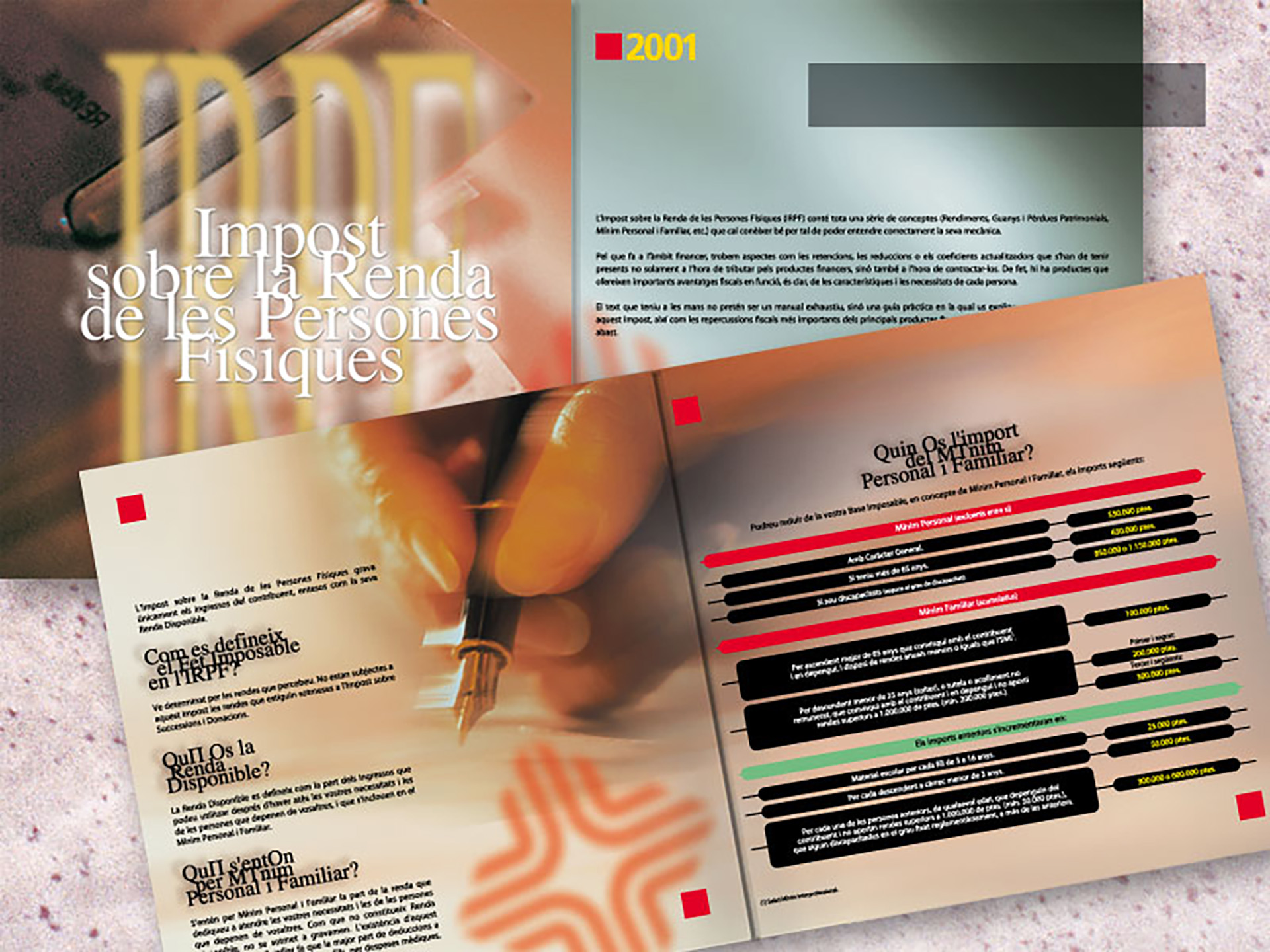 • Les imatges que il·lustren la Guia fiscal del, d'aquella època, nou impost sobre la renda de les persones físiques de Catalunya Caixa (de l'agència AG Photostock) són totes intencionades