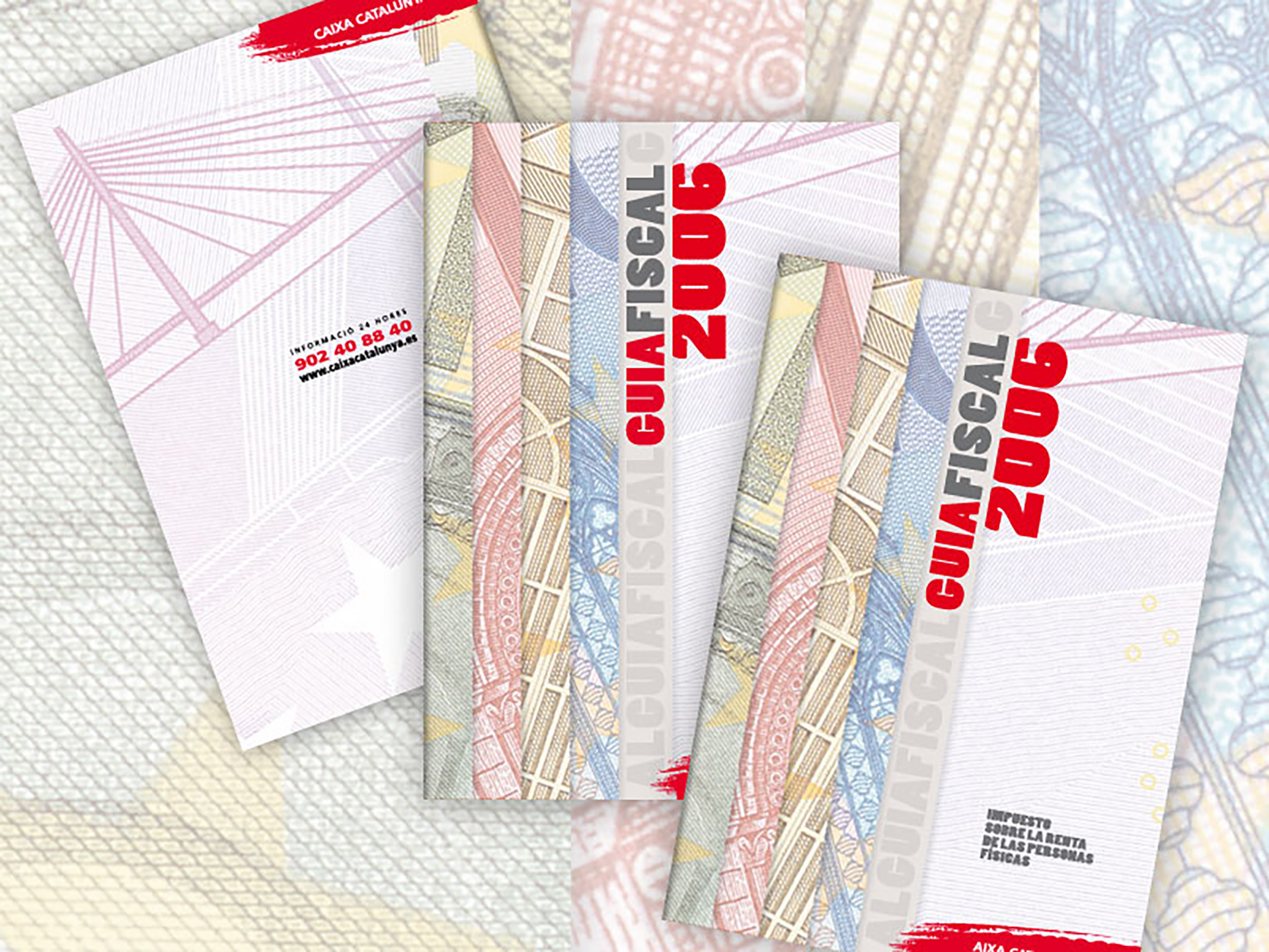 La Guia fiscal de Catalunya Caixa va ser dissenyada per primera vegada l'any 1999, quan la moneda espanyola encara era la pesseta (podeu veure