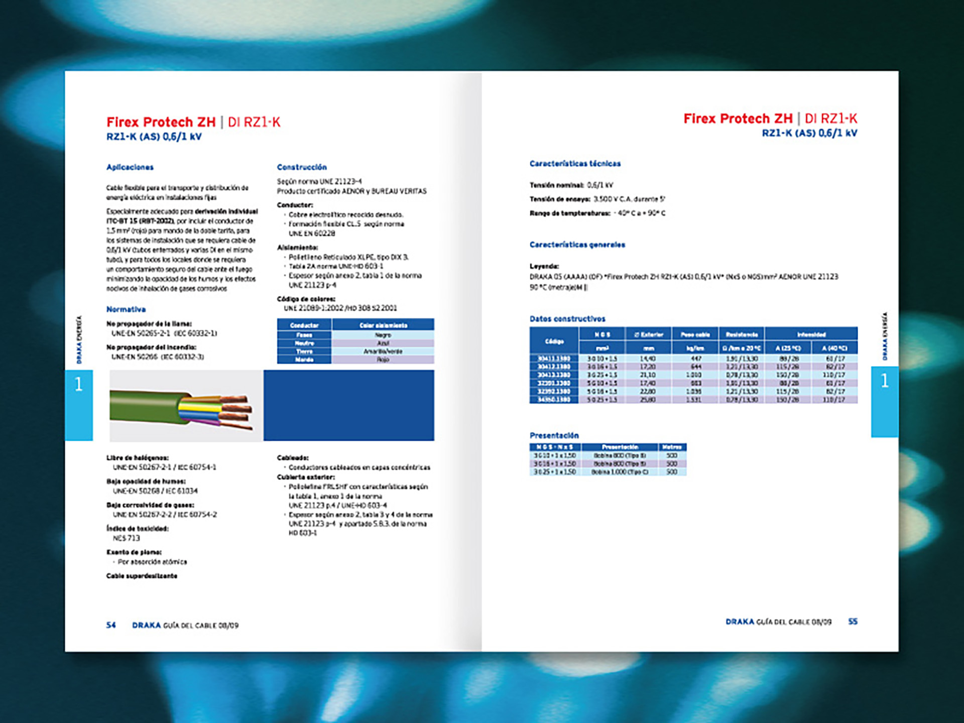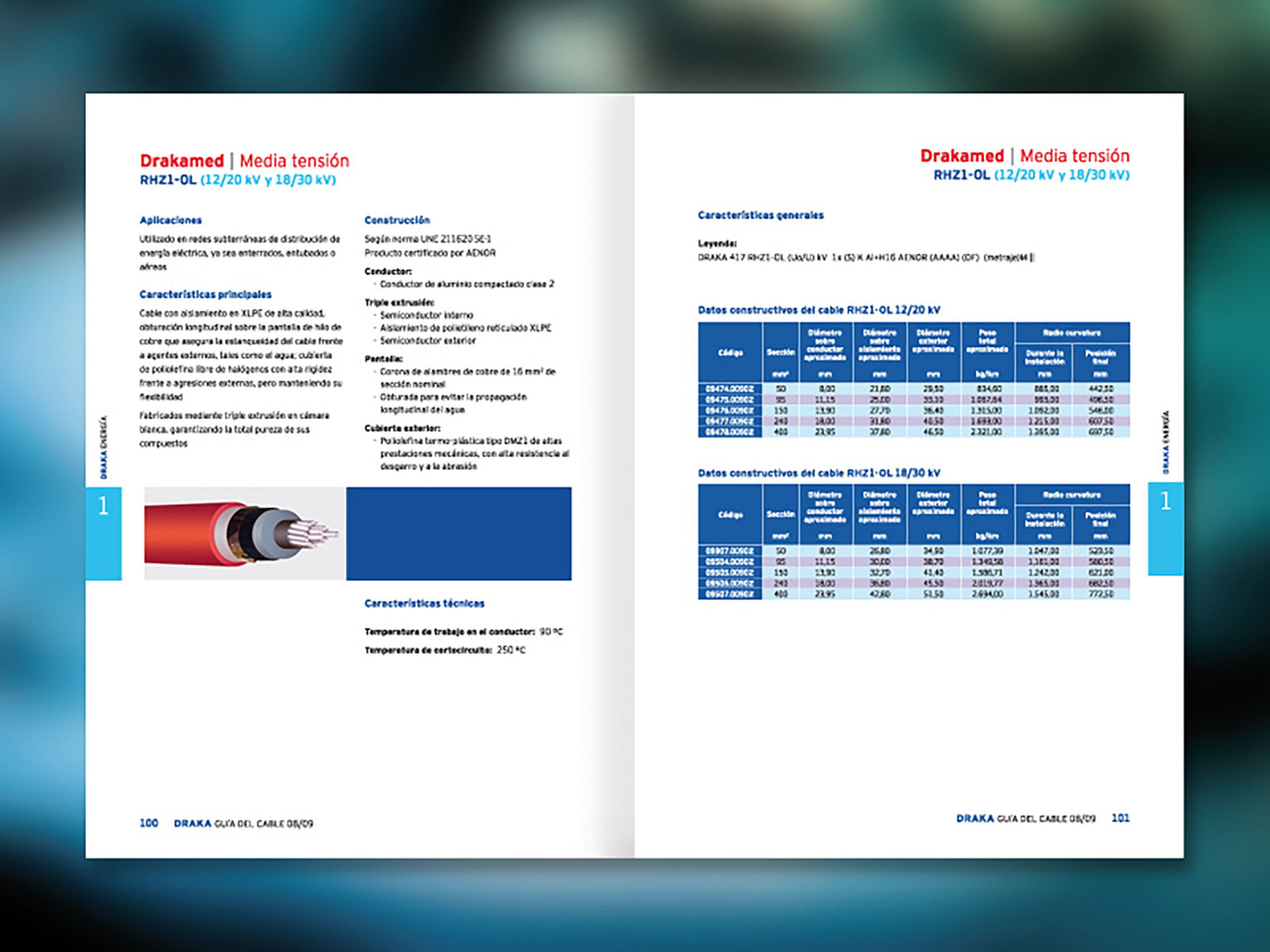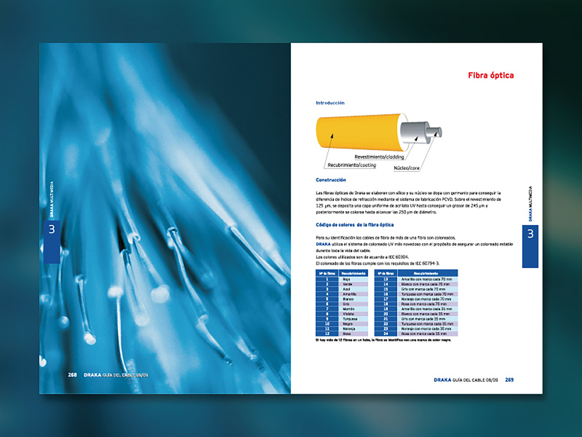 L'any 2007, Draka és un dels líders mundials en el desenvolupament, producció i comercialització de cables i sistemes per a instal·lacions residencials, industrials i infraestructures • La complexitat feia més atractiu el treball • Basant-nos en la guia de Draka Cables, ja editada a nivell internacional des d'Holanda en l'any 2005, i per tal de no distorsionar la imatge present ja en altres països, vam donar aquest toc elegant a un producte, de per si, rigorosament tècnic i seriós, col·locant els diferents elements gràfics en llocs que no trenquessin el seu corporativisme • Resultat: un producte relaxat i amable per a un millor ús dels professionals del cable • L'edició va ser desenvolupada entre 2008 i 2009.