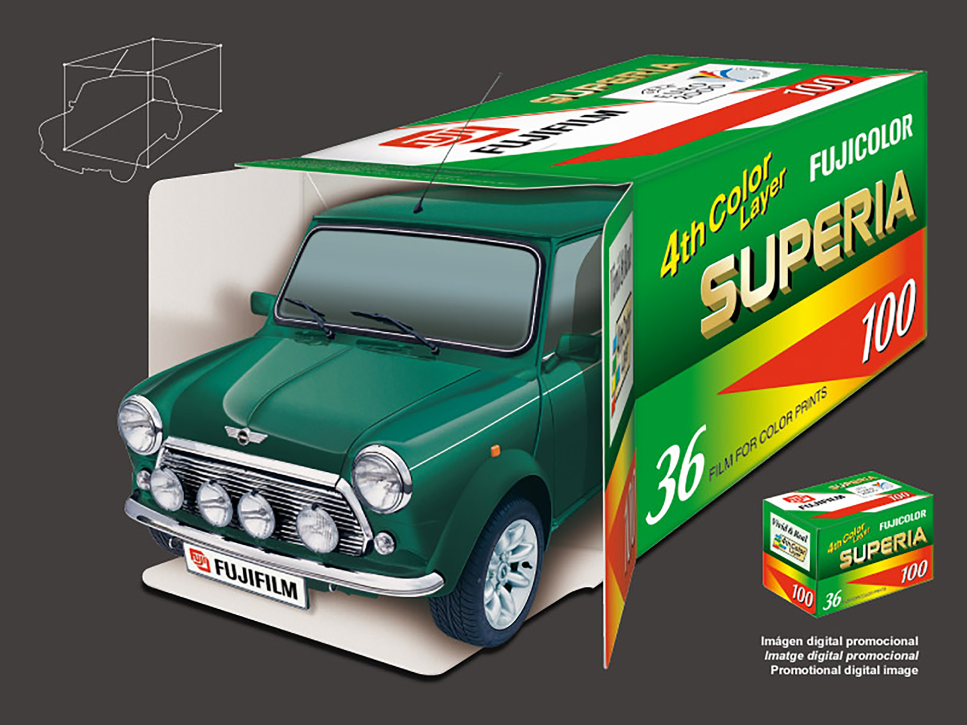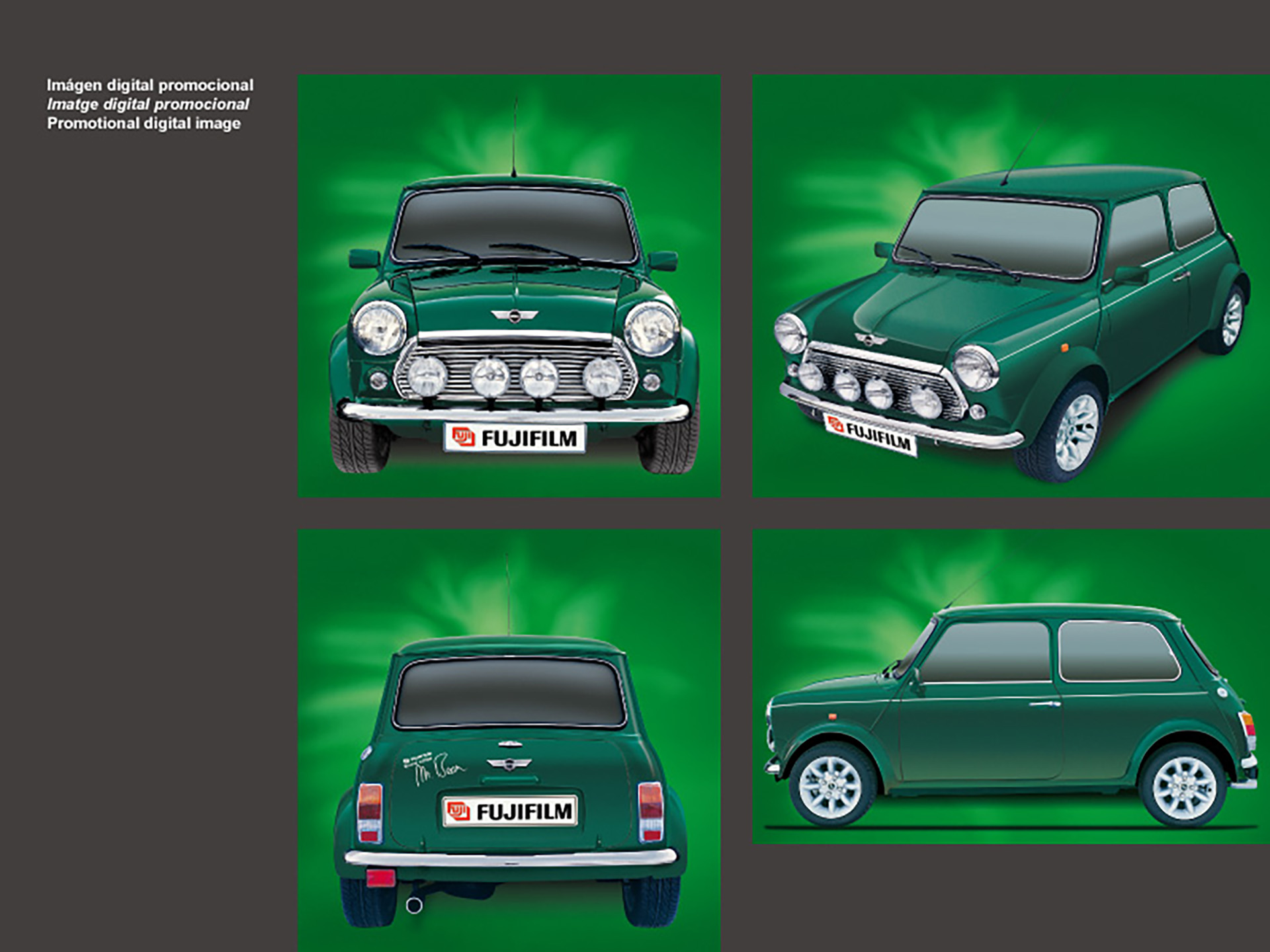 Tots els productes amb les últimes novetats aparegudes a cada temporada de l'any i presentats a catàlegs promocionals per al consumidor: primavera, estiu, tardor, hivern i Nadal • A més, podem observar una col·lecció d'imatges del Mini Cooper promocional de Fujifilm vist des de tots els angles, generades per a la seva utilització en diferents campanyes.