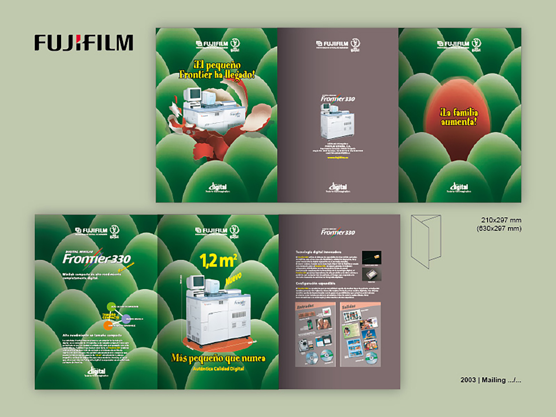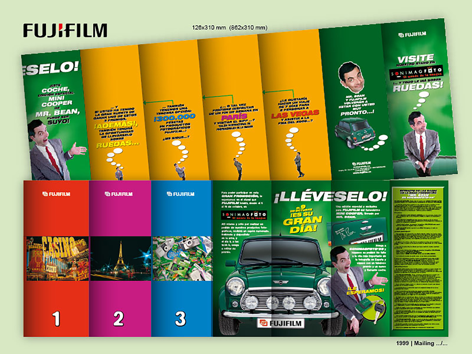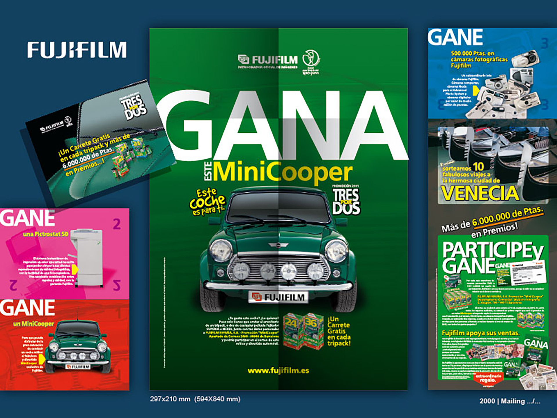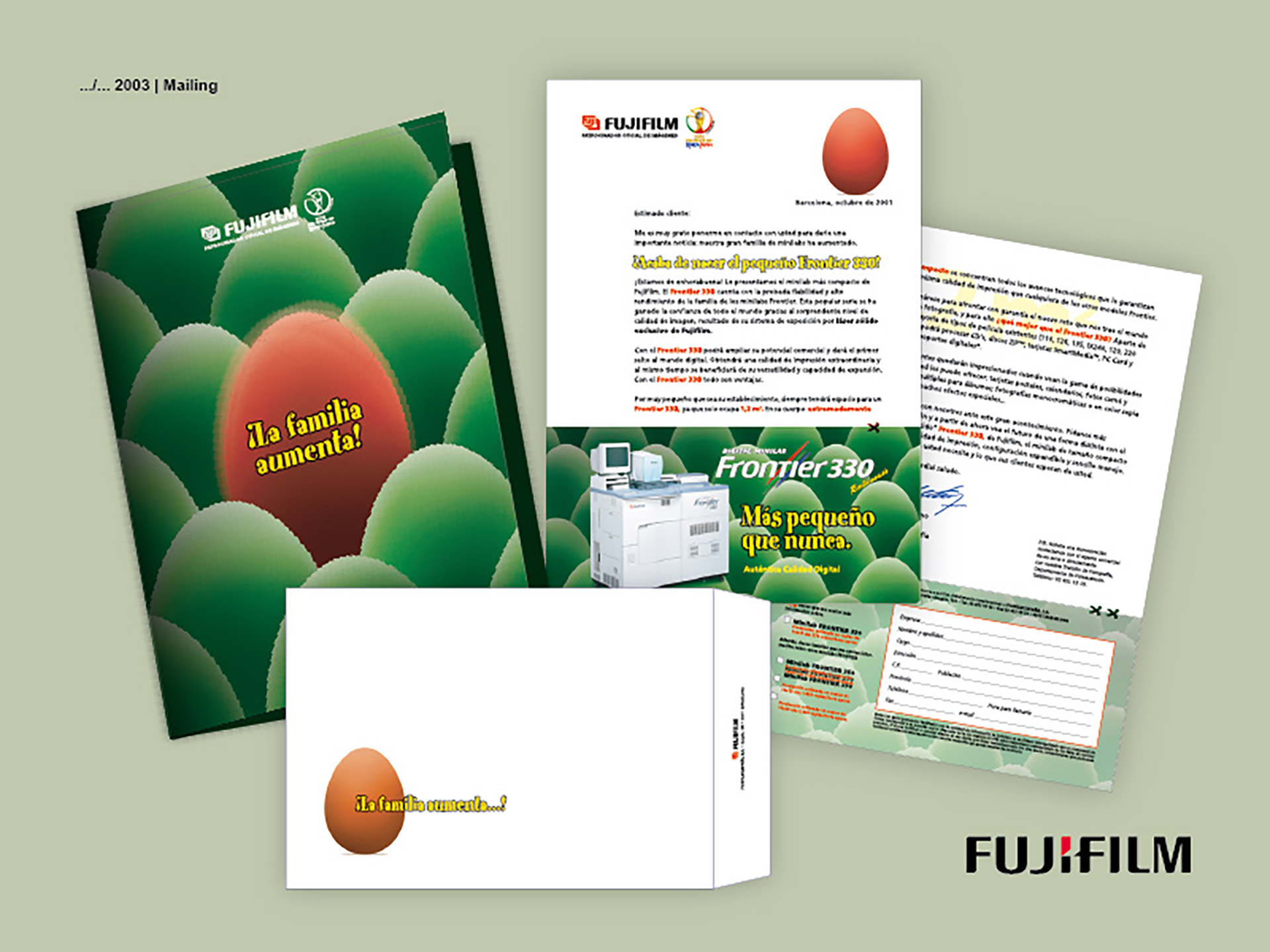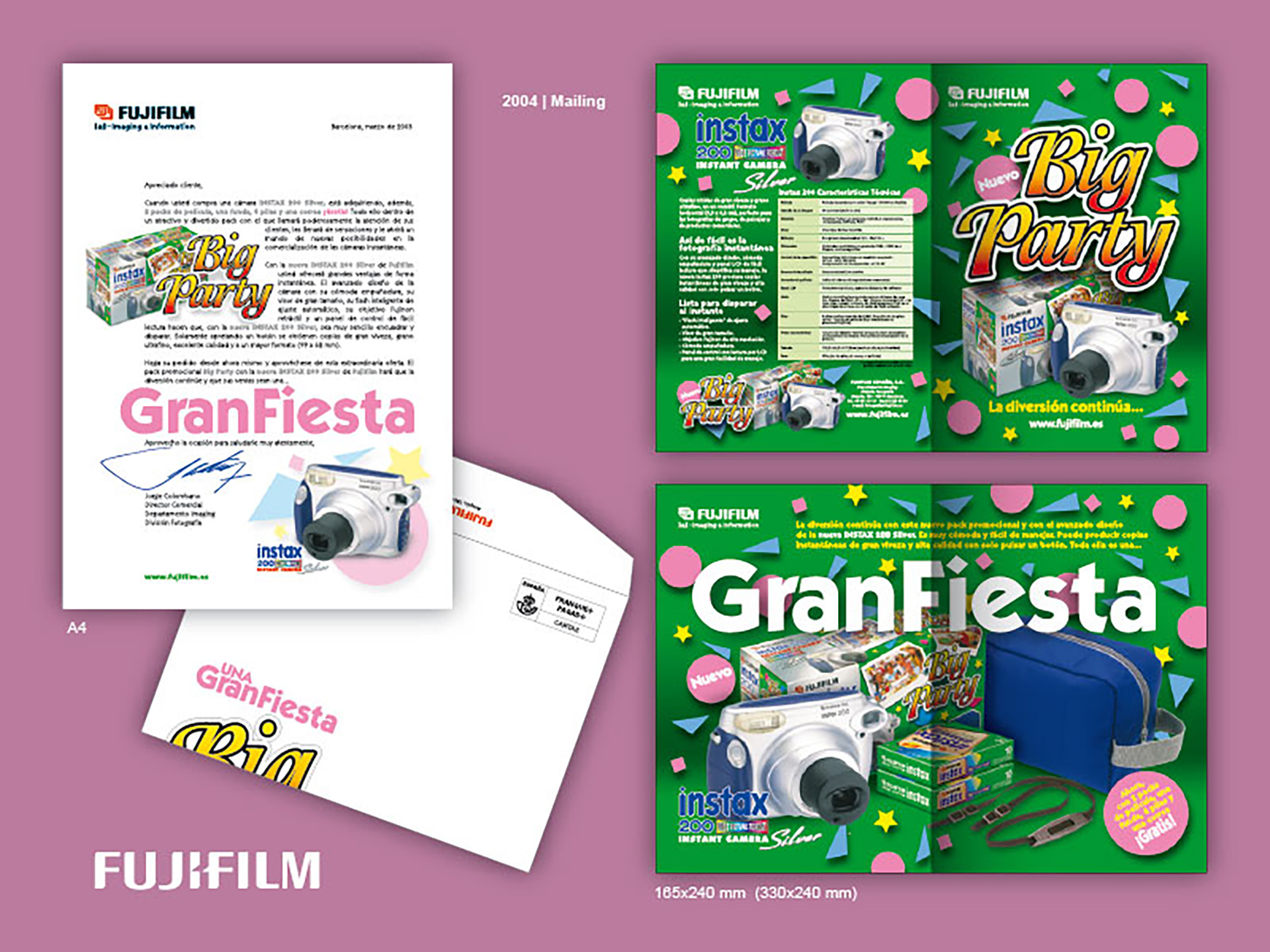 Cada mailing és una acció individual • Aquí es poden veure alguns de l'àmplia gamma de productes Fujifilm • Aquest tipus de comunicació estava destinada al client principal: les botigues • També es van desenvolupar aquest tipus d'accions per comunicar diferents esdeveniments de moment, com ara els campionats mundials de futbol, dels quals Fujifilm va ser patrocinador oficial d'imatge durant diversos anys.