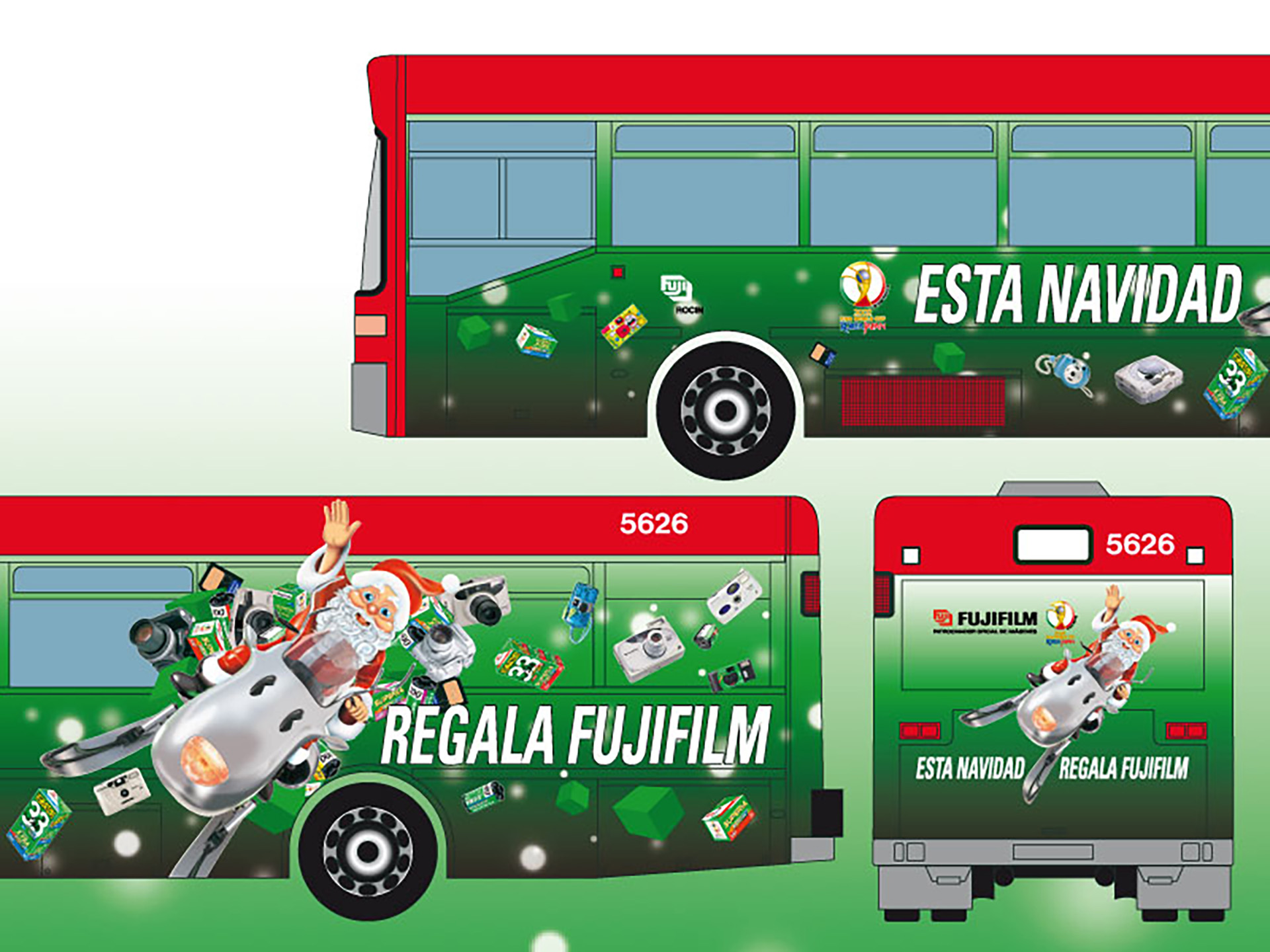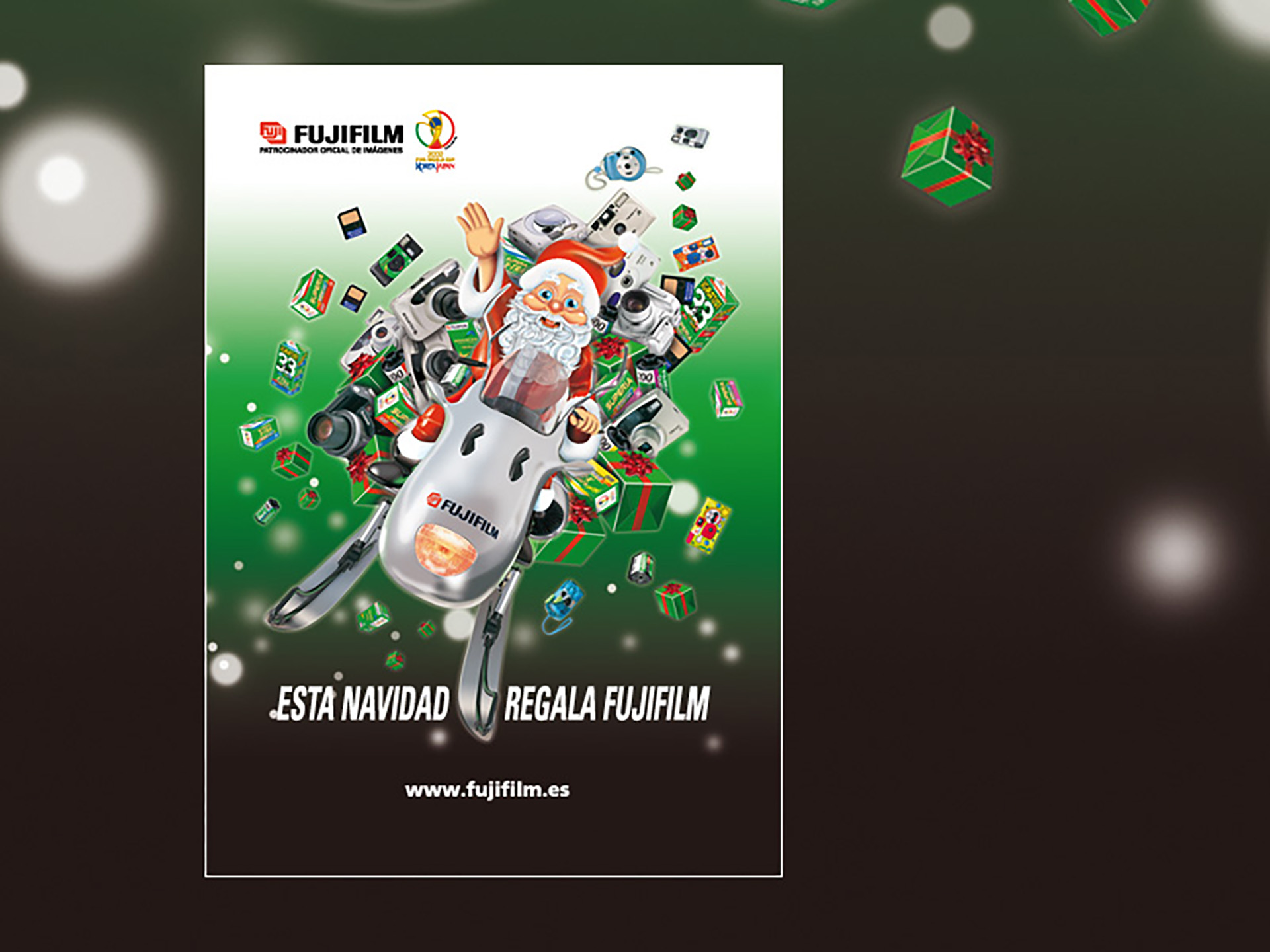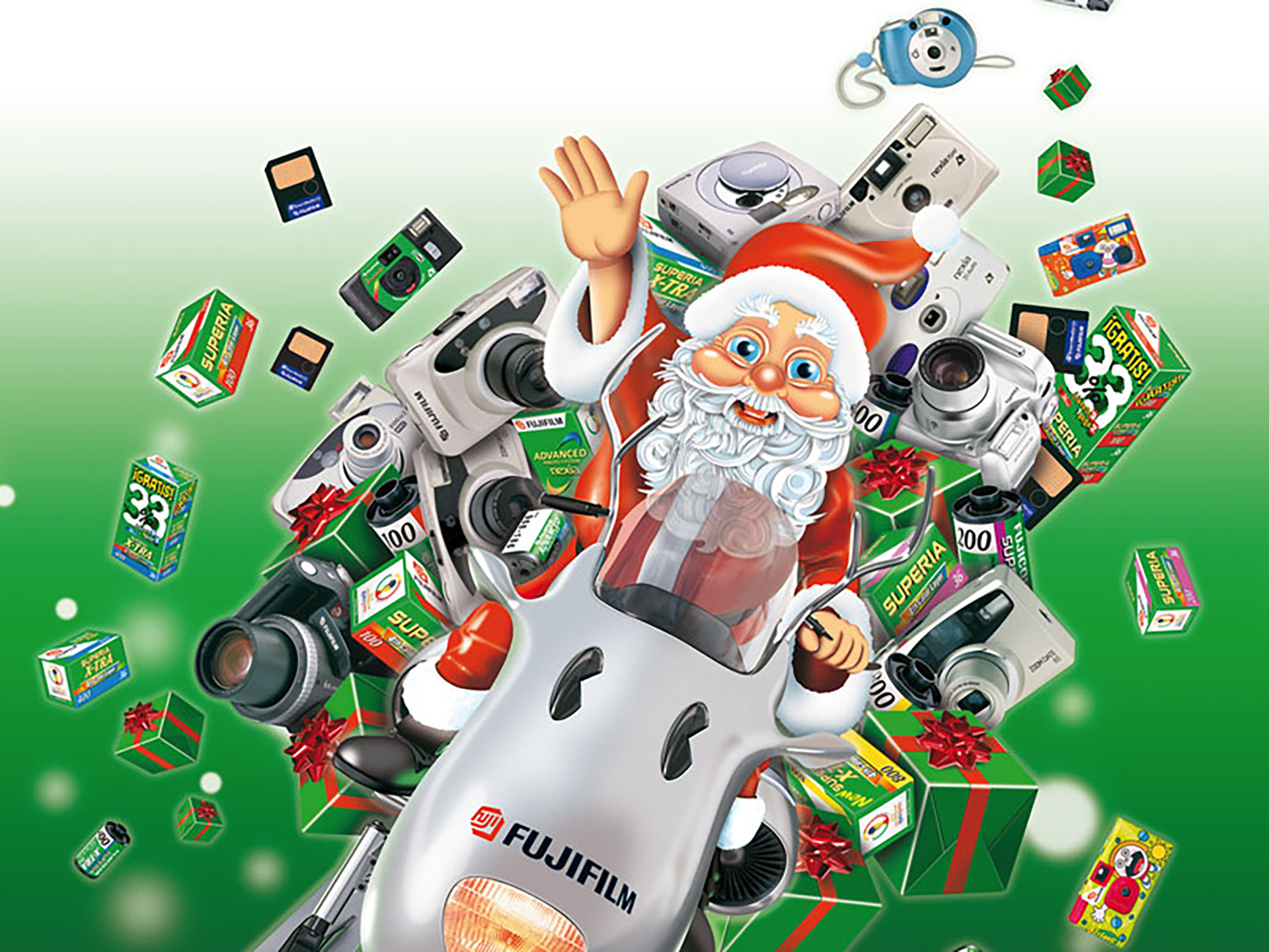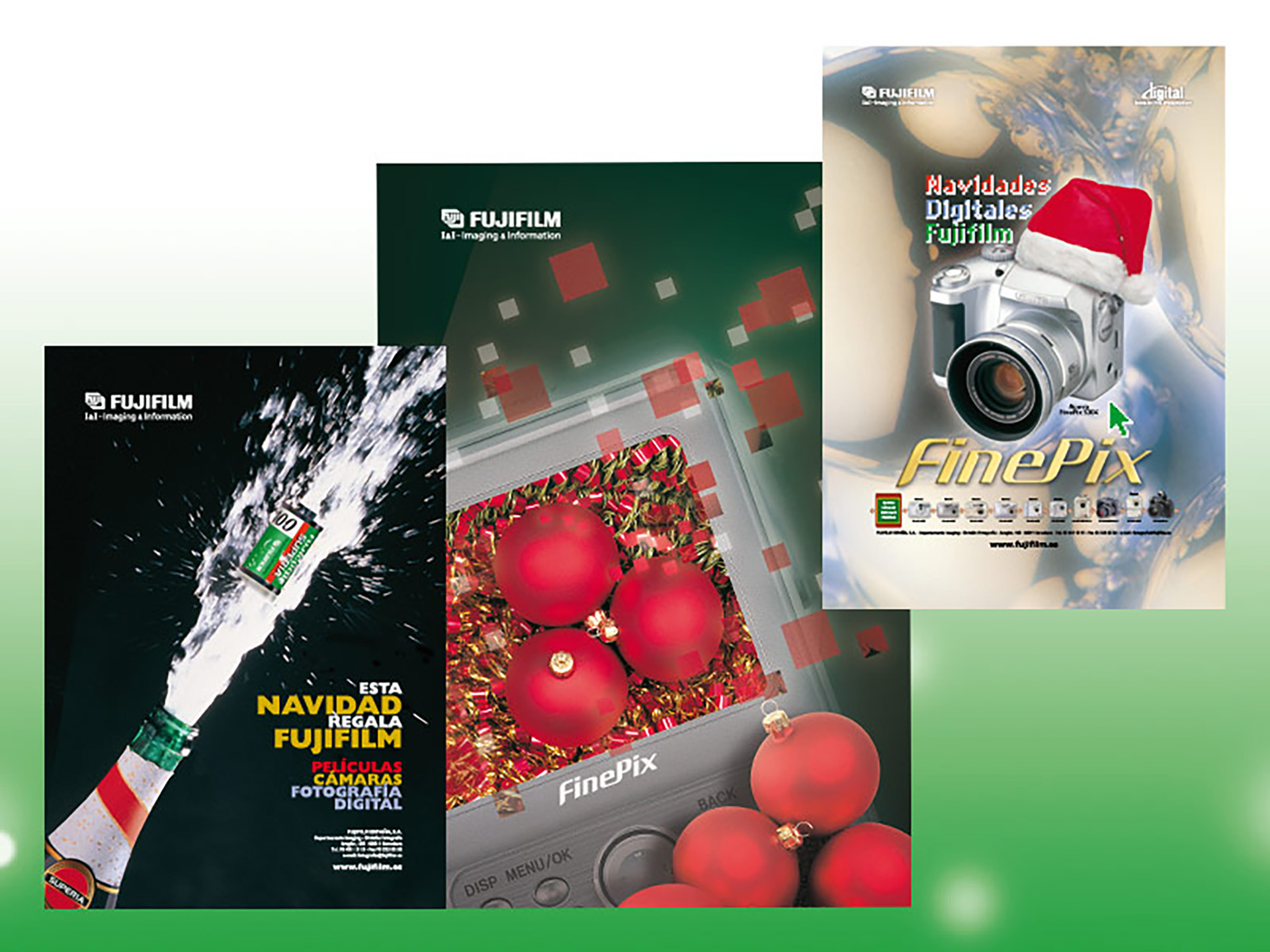 Campanya nadalenca de productes Fujifilm per a establiments de fotografia i consumidors • Cartells, opis per a exteriors, anuncis en revistes i premsa diària, publicitat en autobusos urbans... • Material en el punt de venda.