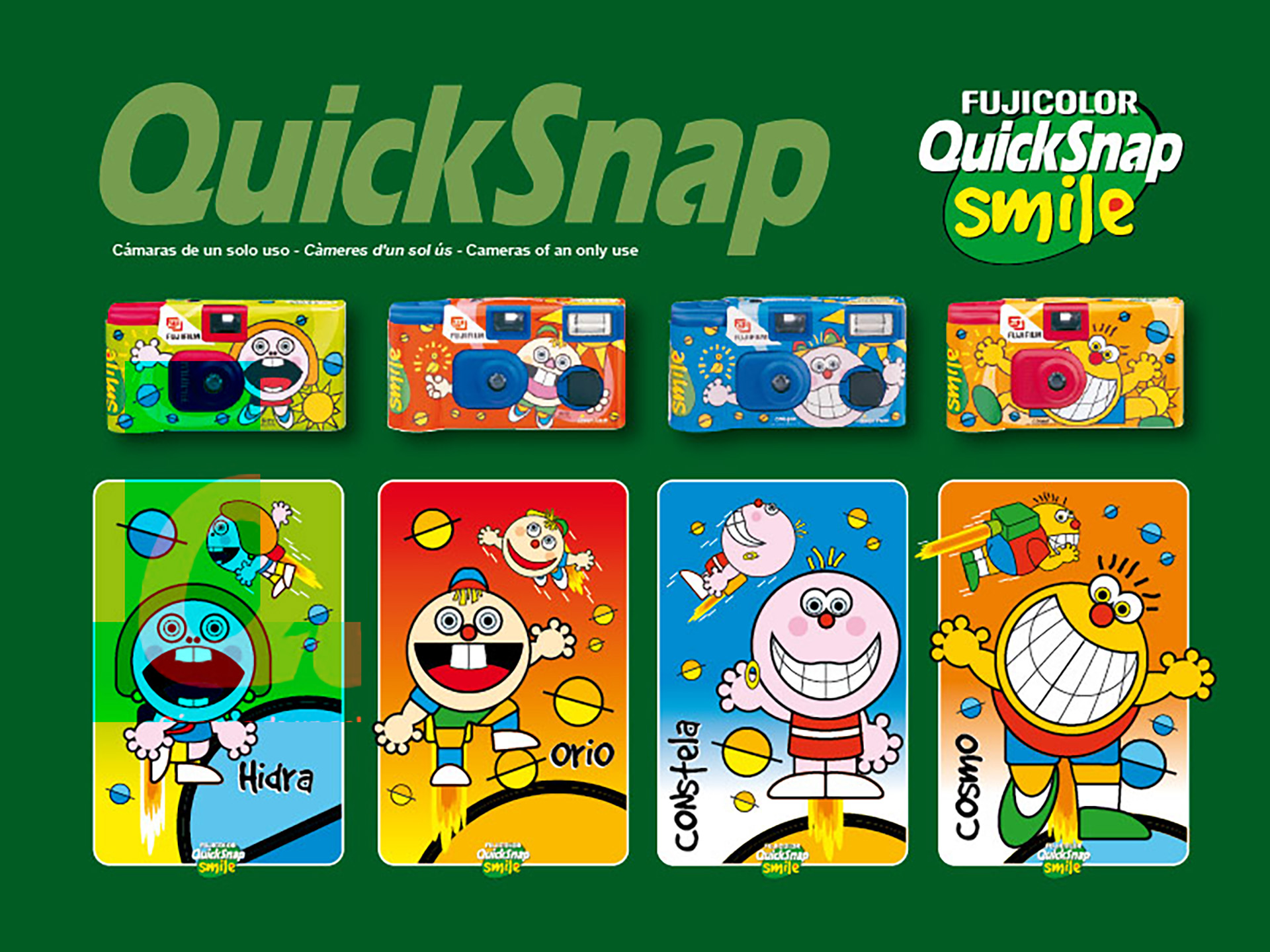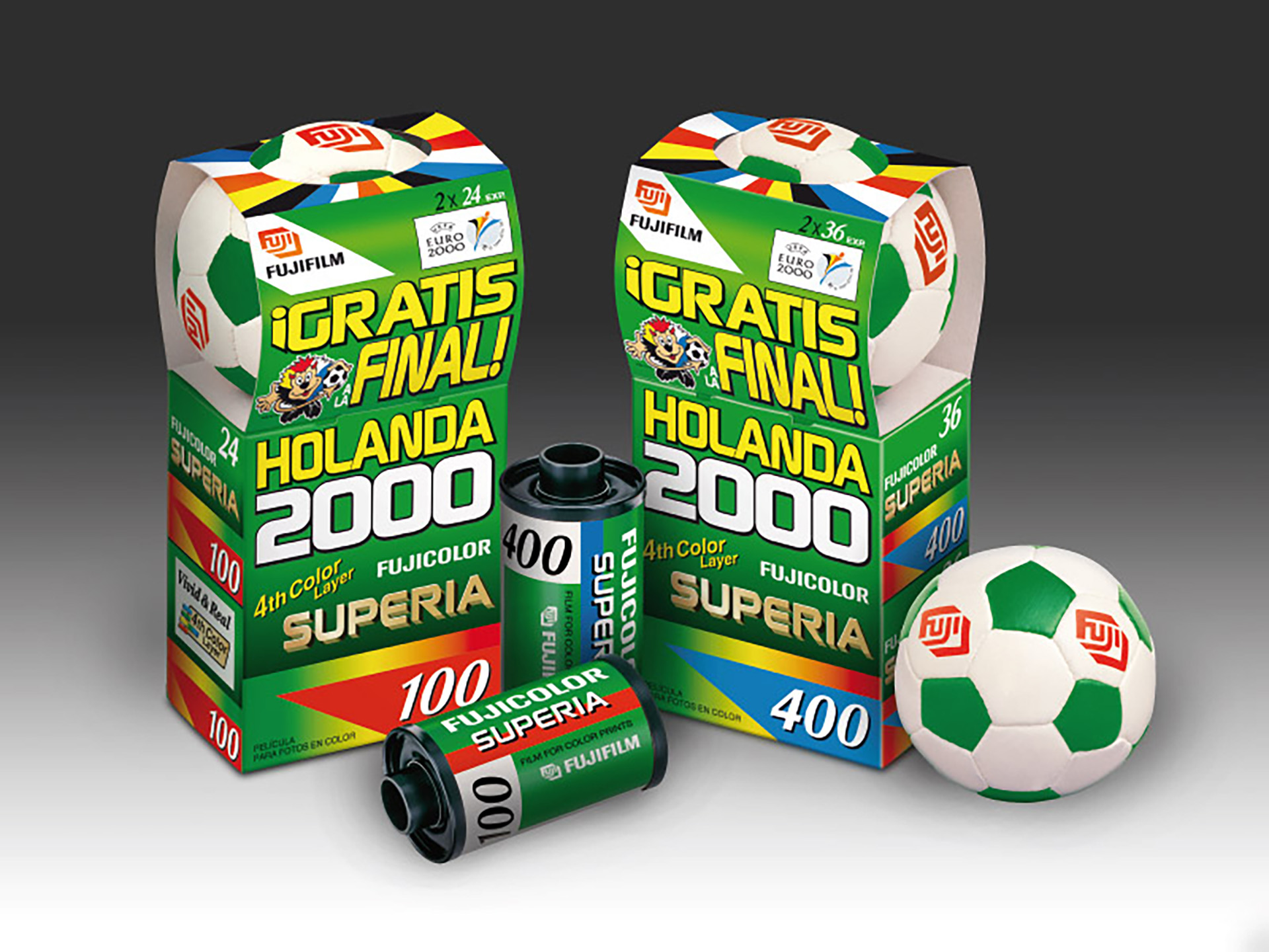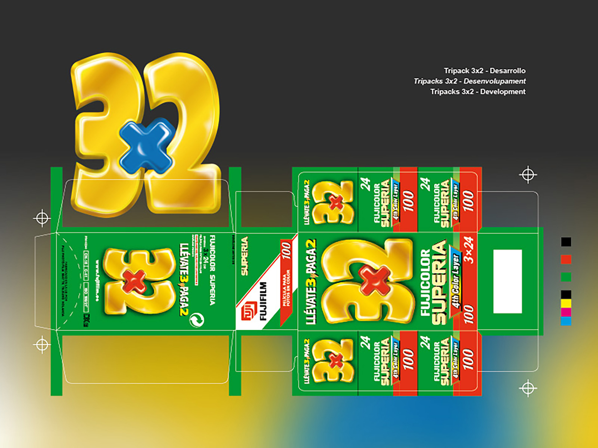 Packs de totes les classes per als productes fotogràfics de Fujifilm Espanya. • Bipacks i tripacks amb rodets de pel·lícula per a promocions com «3x2 - Emporta't 3 i paga 2», «Rodet gratis», «50% de pel·lícula gratis», «Gratis 33%» ... i, també, dissenyats per a grans esdeveniments esportius , com la Copa de Món de Futbol d'Itàlia, França, Holanda, Japó, etc. • Les càmeres d'un sol ús QuickSnap presentaven un embolcall decorat amb diversos motius, com els Smile (divertits personatges com Hedra, Orio, Constela i Cosmo); els packs promocionals de les càmeres Instax incloïen packs de pel·lícula i funda gratis; i les ofertes especials de les càmeres Nexia Q1 (Advanced Photo System) es venien en atractives bosses de material plàstic • Tot això va abastar una àmplia època, en la qual vam crear un autèntic historial gràfic que va portar a Fujifilm Espanya a aconseguir una atractiva cota d'alta qualitat i bona presentació reconeguda per tot el mercat.