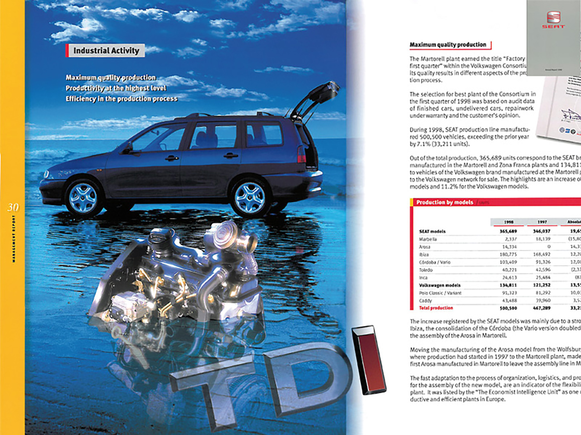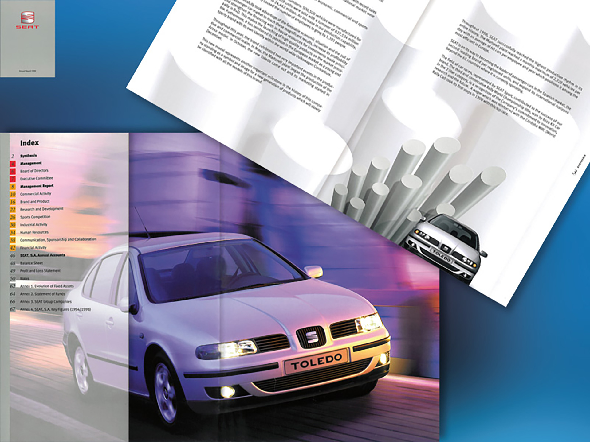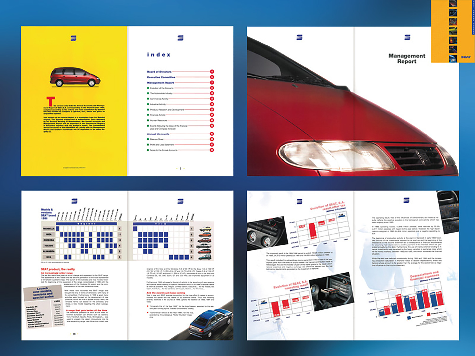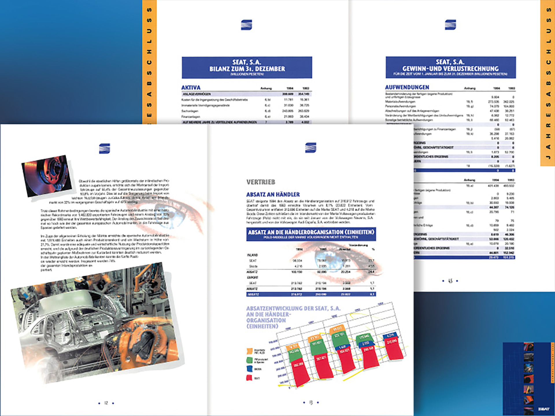 Corria el mes d'octubre de 1993 (no recordo quin dia) • Vam rebre una trucada en què se'ns comunicava que havíem de presentar-nos, al migdia, a casa del Dr. Utz Claassen (vicepresident primer de Economia de SEAT) • Havíem presentat (juntament amb Tecfa, responsable del projecte) tots els esbossos necessaris per a la realització de l'Informe Econòmic Anual de l'any següent (1994), i estàvem esperant resultats • Quan vam entrar a la casa (a Gavà), i res més veure com estava decorada, em vaig adonar que havíem guanyat la partida • Estava decorada -parets, terres, sostres ...- gairebé, gairebé, semblant a les pàgines que havíem proposat en el nostre disseny (no gaire habitual per a l'època en aquest tipus d'informes) • Havíem donat en el clau. A partir d'aquí, van ser cinc anys seguits realitzant la memòria de SEAT. Va ser una grata sorpresa i una extraordinària relació amb el Dr. Claassen • Es van editar versions de la memòria, a part de l'espanyol, en anglès i en alemany.