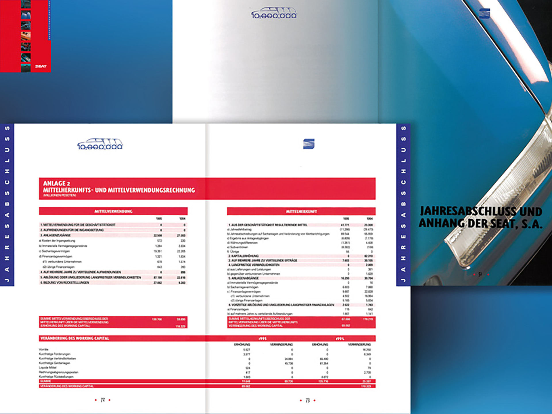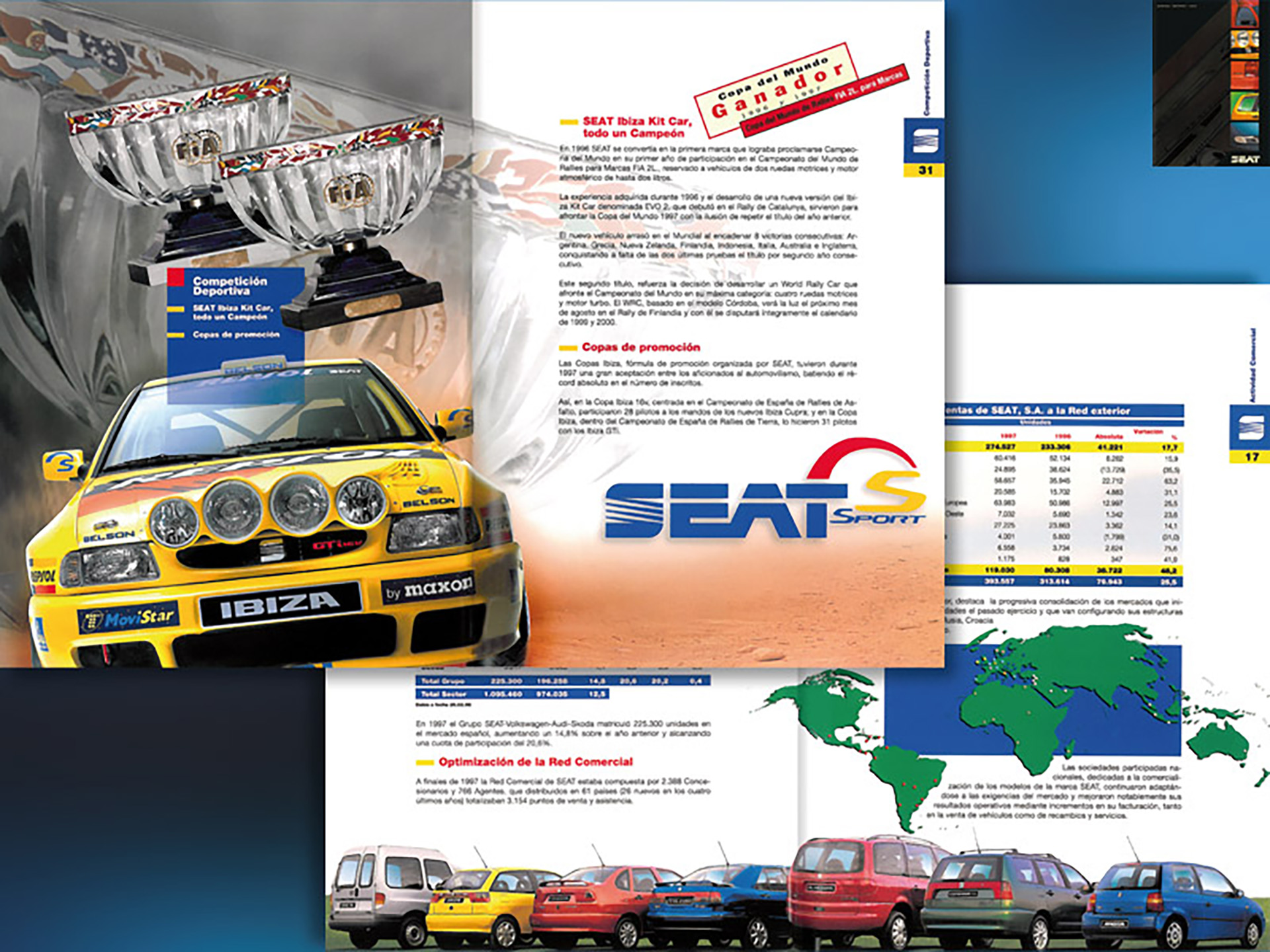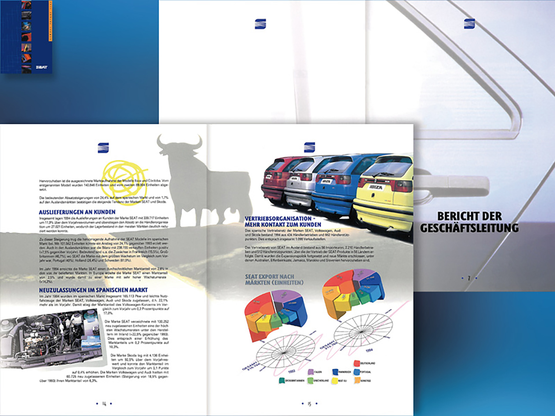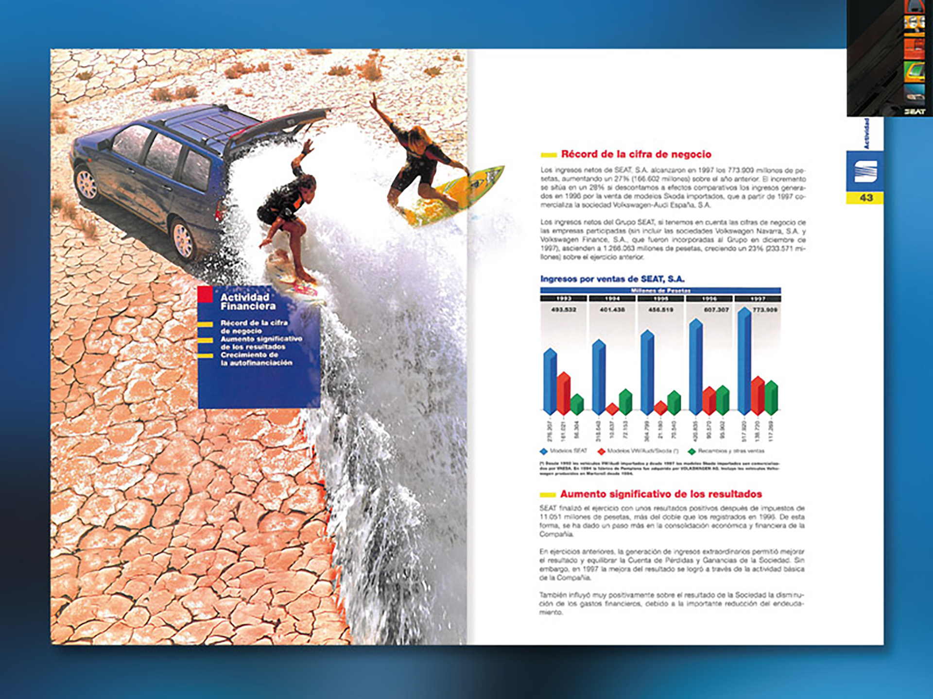 Corria el mes d'octubre de 1993 (no recordo quin dia) • Vam rebre una trucada en què se'ns comunicava que havíem de presentar-nos, al migdia, a casa del Dr. Utz Claassen (vicepresident primer de Economia de SEAT) • Havíem presentat (juntament amb Tecfa, responsable del projecte) tots els esbossos necessaris per a la realització de l'Informe Econòmic Anual de l'any següent (1994), i estàvem esperant resultats • Quan vam entrar a la casa (a Gavà), i res més veure com estava decorada, em vaig adonar que havíem guanyat la partida • Estava decorada -parets, terres, sostres ...- gairebé, gairebé, semblant a les pàgines que havíem proposat en el nostre disseny (no gaire habitual per a l'època en aquest tipus d'informes) • Havíem donat en el clau. A partir d'aquí, van ser cinc anys seguits realitzant la memòria de SEAT. Va ser una grata sorpresa i una extraordinària relació amb el Dr. Claassen • Es van editar versions de la memòria, a part de l'espanyol, en anglès i en alemany.