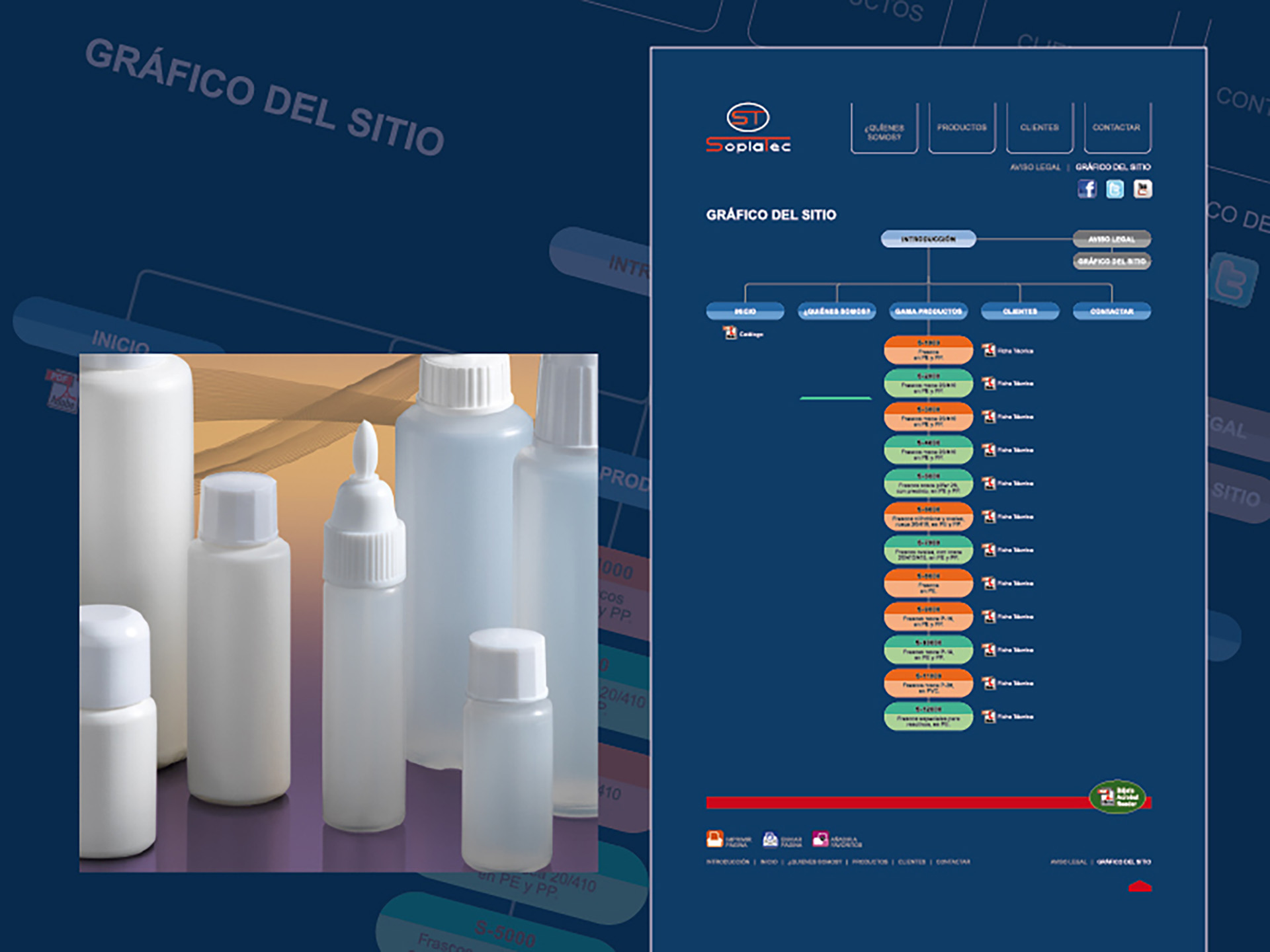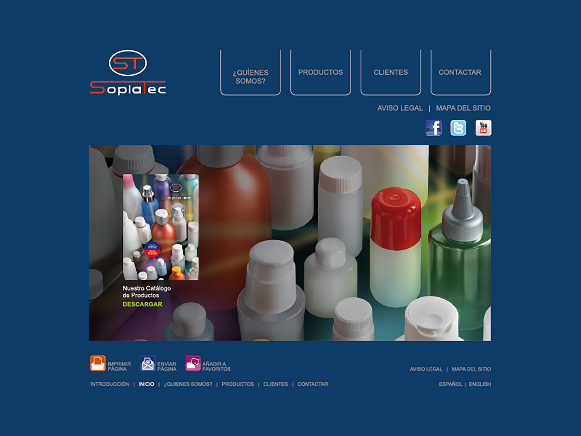 La fredor de l'envàs de plàstic, per si sol, contrasta amb l'ambient càlid que li donem en aquesta pàgina web • Tot el seu contingut està creat amb un toc molt personalitzat i ressaltant la importància de l'envàs com a producte estrella • Presentat en uns entorns calents, i fins i tot sofisticats, que no tenen altre fi que realçar-lo, al temps que el dotem d'informació tècnica molt pràctica per als professionals del sector • Mostrem una web pràctica i útil alhora que càlida i elegant • No ens cansem de caminar per ella.