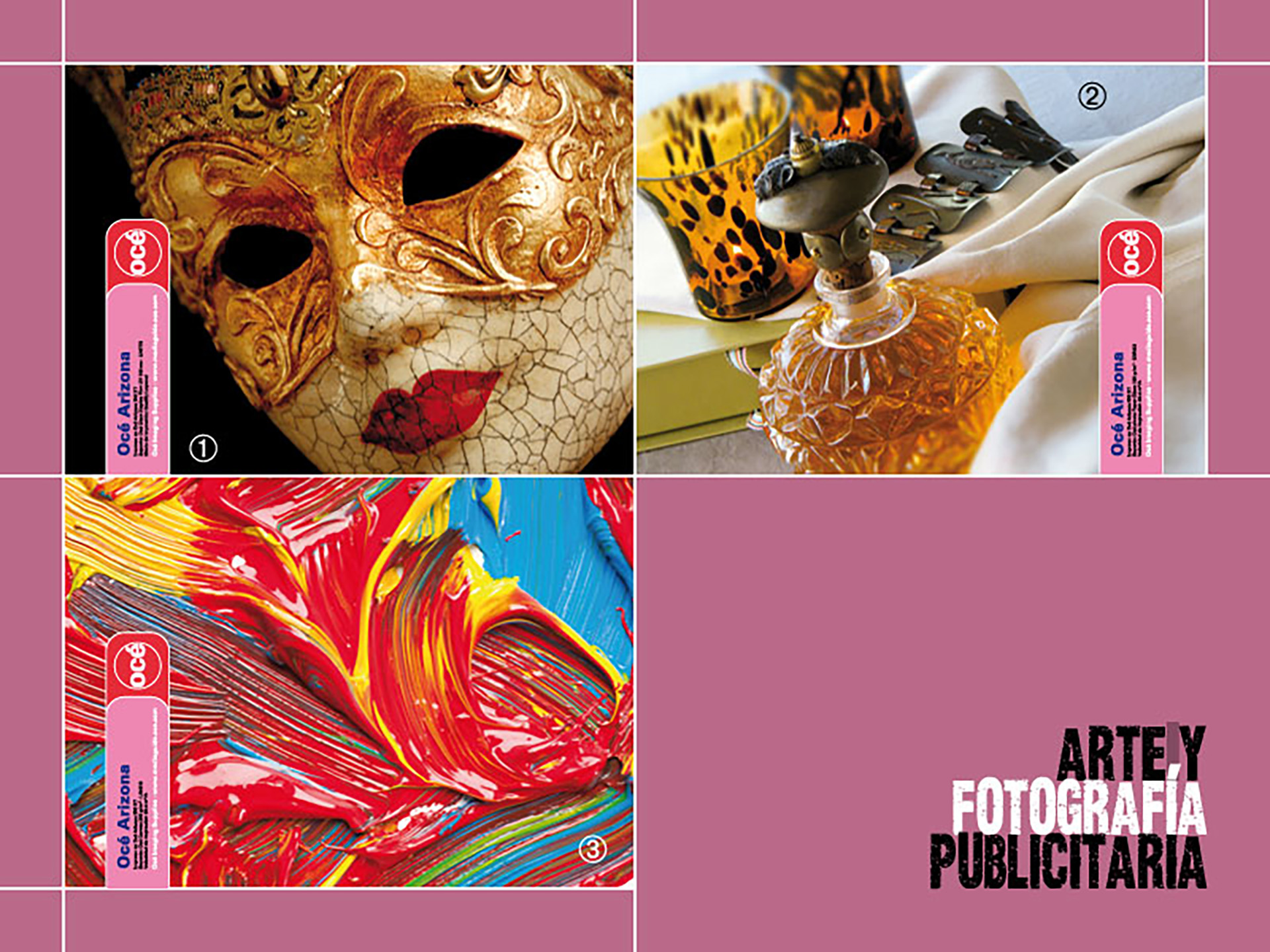 Un muestrario distinto para la gama de impresoras Océ Arizona • En el briefing quedaba remarcado: «La impresora más reconocida de su categoría por su calidad, ahora, también, con otro atributo diferencial más: su alta velocidad» • En un contenedor-caja-maleta con asa, se presentaban muestras reales impresas sobre distintos soportes Océ, rígidos y flexibles, que admitían las Océ Arizona 350 XT y 550 XT • Sus aplicaciones encajan perfectamente en el mundo del arte y la fotografía publicitaria, la señalización, la cartelería exterior en general y los puntos de venta • El resumen del cierre de este gran trabajo venía a ser algo así como: «... Velocidad, más calidad y más versatilidad, igual a mayor productividad • ¡Equilibrio perfecto!» • Septiembre de 2010.