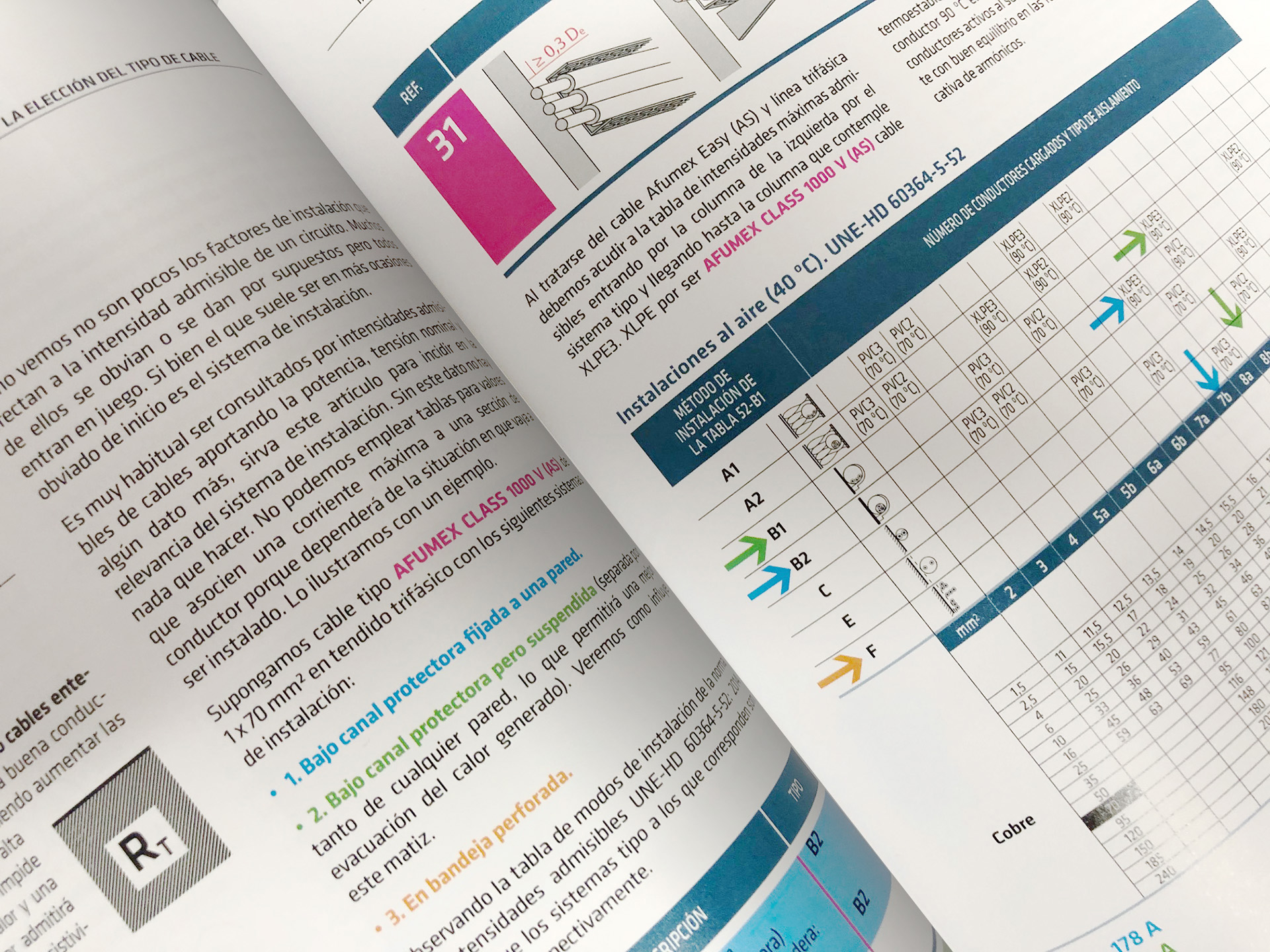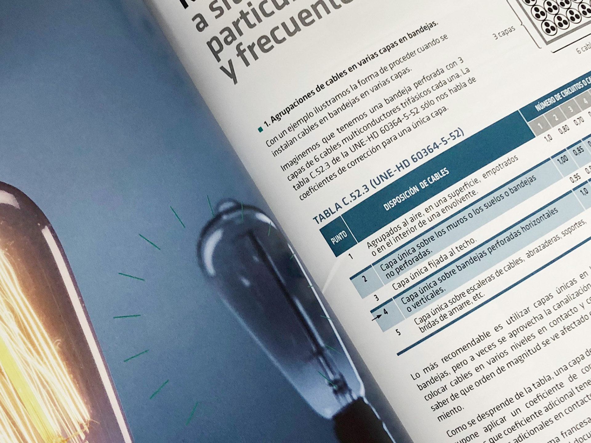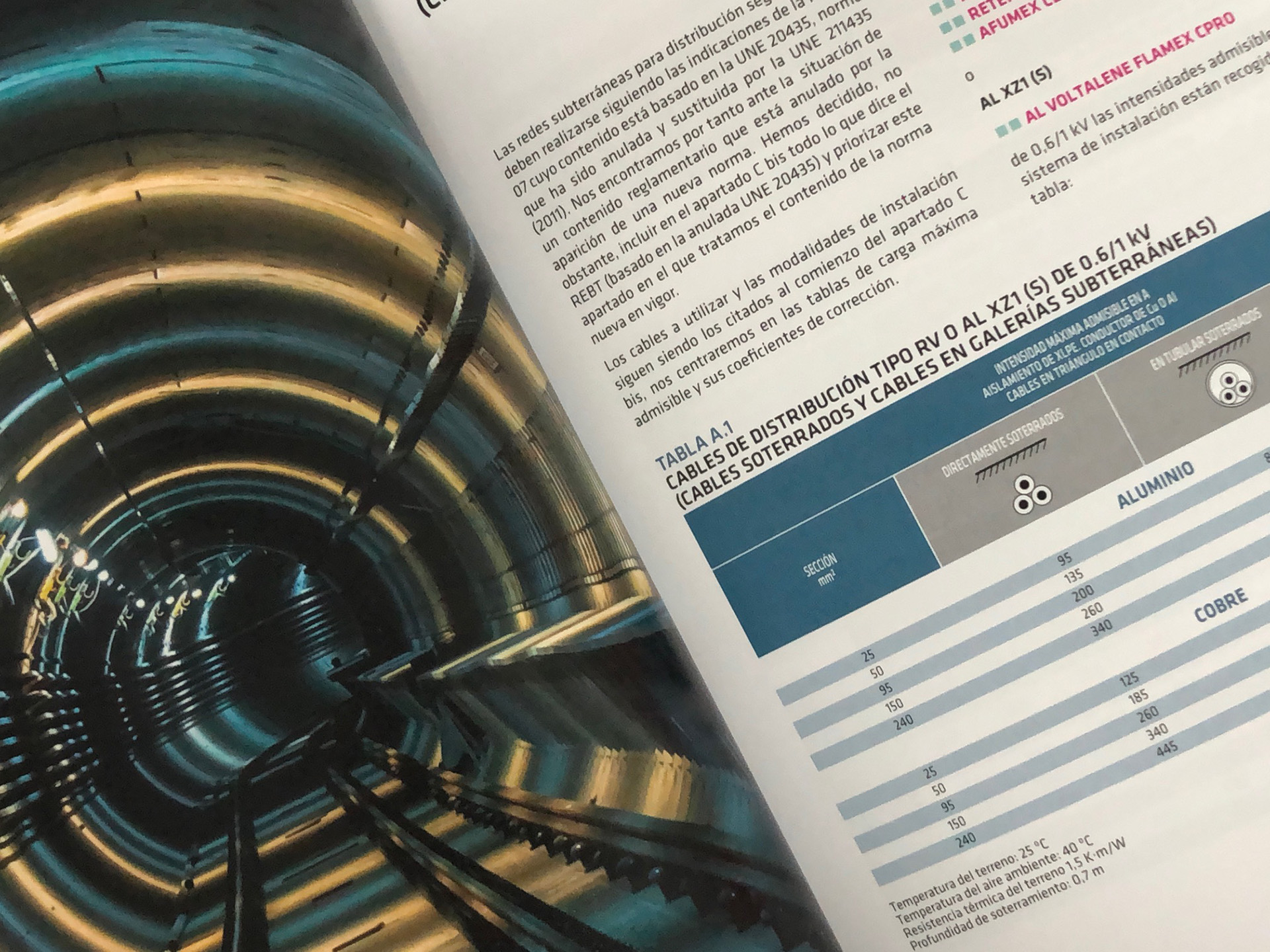 Para Prysmian Group, en el año 2018 realizamos la edición gráfica del Libro Blanco de la Intalación • Un Manual Técnico y Práctico de Cables y Accesorios para BAJA TENSIÓN • 352 páginas • Imágenes, gráficos, fórmulas matemáticas, estadillos, textos... toda una comparsa completa de ingredientes en un solo libro • Las portadas son de nuestro amigo y colega Enric López • Un conjunto final muy digno y amable.